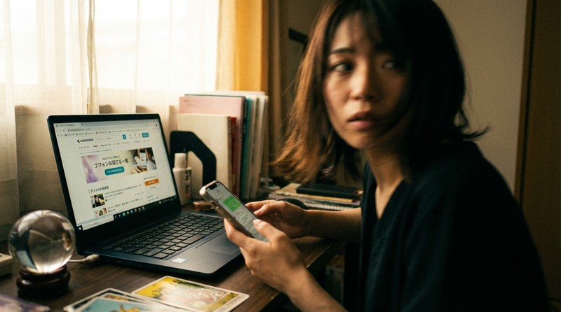 現実的に初心者が収益を上げられるのは、ココナラか電話占い会社のいずれかです。ココナラは自分のペースで価格やメニューを決めたい人向け、電話占い会社はオーディションがあるものの、圧倒的な集客力を借りたい人に向いています。
